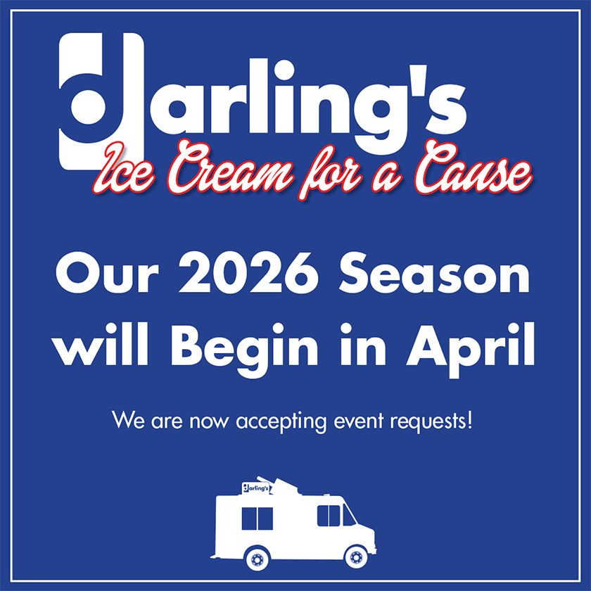 We are now accepting requests for the 2026 Darling’s Ice Cream for a Cause season. If you are planning an event and would like the Darling’s Ice Cream Truck to attend and fundraise for a great charity or cause, Request a Stop today! We’ll hit the road in April, and our season will run through October 31st.